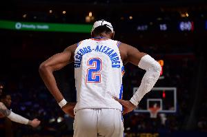 本场比赛亚历山大出战31分钟,23投10中,三分6中3,罚球12中10砍下33分7篮板8助攻,正负值+17,第四节他5中4砍下11分3助攻。